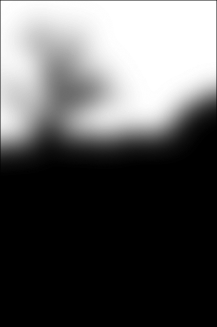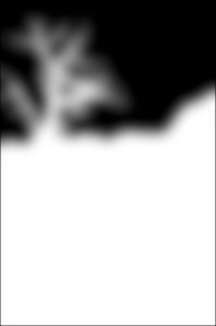 Al marge de l’efecte concret, que només està en funció de les preferències personals, cal notar que les diferents màscares de capa tenen diferents graus de desenfocament i que la de les muntanyes llunyanes actua sobre l’efecte de la primera corba del paisatge en general; és a dir, accentua l’efecte de la primera capa d’ajustatge de corbes. Les decisions sobre l’ajustatge del desenfocament de la màscara, les faig atenent a l’efecte visual observant la imatge al 100% en pantalla mentre regulo el cursor de l’ajustatge.