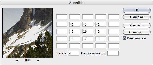 La millora s’ha aplicat amb el filtre Otro>A medida… del menú Filtros, amb els ajustatges que es mostren a sota: