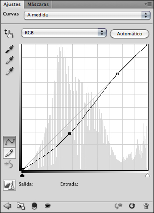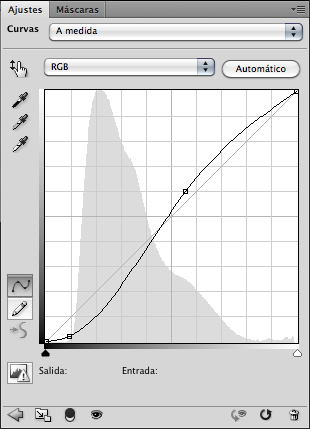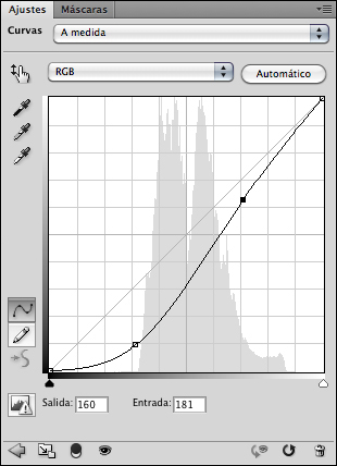 A continuació aplico una corba al cel amb el mateix procediment ja descrit però utilitzant ara la selecció del cel activa per crear la capa d’ajustatge.