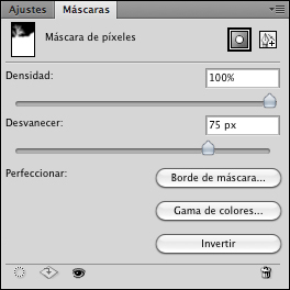 El sistema consisteix en fer una capa combinada de tot plegat i aplicar-hi el filtre Filtro>Estilizar>Hallar bordes. El filtre ens detecta totes les vores presents a la imatge i les acoloreix amb un valor de gris més o menys fosc en funció del seu contrast de vora (contingut freqüencial); com que només volem les de freqüència més alta, aplicant-hi un llindar amb l’eina Imagen>Ajustes>Umbral…, podem aïllar aquests voravius sense necessitat d’operacions manuals. Si el gruix de les reserves és insuficient o excessiva per una imatge en concret, es poden regruixar els voravius amb un filtre de Mínimo o aprimar-los amb un de Máximo. La màscara resultant, amb algun retoc manual en aquest cas, és la següent: