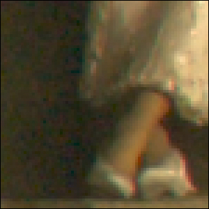 En el caso del ruido, tampoco pueden hacerse previsiones sobre el grado de corrección necesario, pues la tasa de ruido desarrollada por una misma combinación de cámara, objetivo y sensor es variable en función de la escena, la iluminación, el tiempo de exposición y el acierto en el ajuste de la combinación tiempo/diafragma. A continuación se muestra la comparación entre la imagen original y la corregida en el caso que nos ocupa. En ella puede apreciarse tanto la corrección del ruido en la zona en sombra de la izquierda como la de la TCA en los bordes del pie y el zapato. La corrección se ha realizado con los ajustes Luminancia y Color de la pestaña Detalle de ACR; en este sentido, se procura siempre utilizar la corrección mínima ya que aunque la herramienta es muy eficaz, no puede evitarse una cierta pérdida de nitidez que hay que compensar posteriormente en la mejora final de visibilidad de bordes que se comenta más adelante: