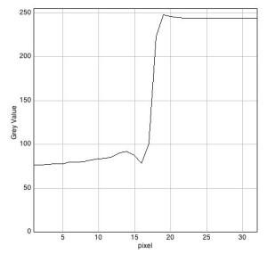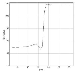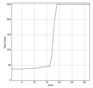 Figura 6. A la izquierda, borde horizontal (filas) del archivo JPEG Nivel3 obtenido mediante el programa 645PRO. A la derecha, misma medida en sentido vertical (columnas).