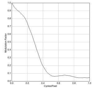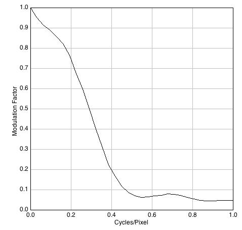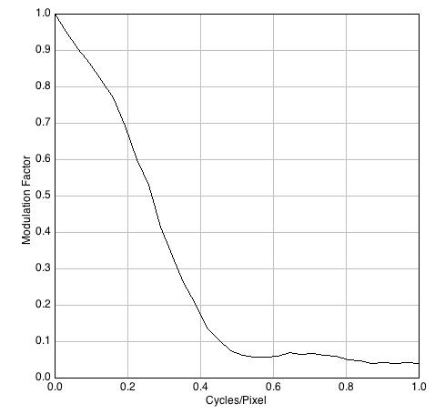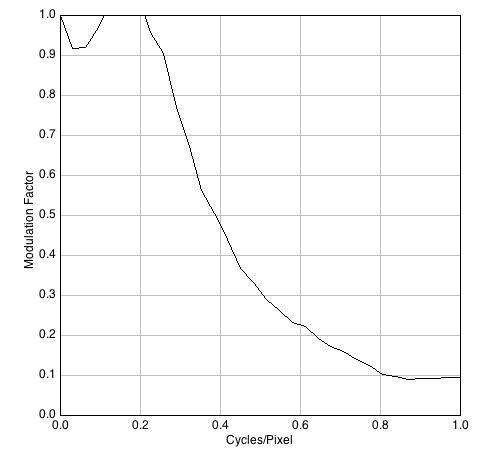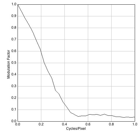 Las diferencias no son significativas en términos de percepción visual y el valor promedio alcanzado, 29,5 dB, es discreto para los estándares de las cámaras DSLR que suelen estar por encima de los 45 dB. Notar que la cifra es exactamente la misma para los dos archivos procedentes del programa 645PRO. Los resultados de la MTF, sin embargo, denotan algunas diferencias.