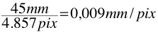 Relacionando ahora el tamaño de la imagen y el tamaño del objeto, la separación entre las dos cimas, se puede calcular el aumento de la toma: