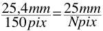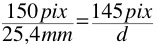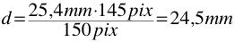 La distancia d entre las dos cimas es, sobre el mapa, de 145pix. El mapa se escaneó a una resolución de 150ppi. Por lo tanto, se puede establecer la relación:
