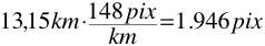 Para conocer a qué distancia equivalen los 13,15km sobre el mapa, se calcula su equivalencia en píxeles. Dado que el mapa se ha escaneado a una resolución de 150ppi y que a la escala del mismo, 1:40.000, un kilómetro equivale a 25mm, puede establecerse la siguiente relación: