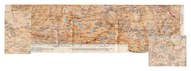 Para trazar la mencionada visual principal, se escanearon a 150ppi la parte baja de la hoja Vall d’Aran de la Editorial Alpina a escala 1:40.000 y porciones de las hojas La Maladeta y Sant Maurici de la misma editorial, ambas a escala 1:25.000. Las porciones escaneadas se unieron y encajaron mediante procesado de imagen, reduciendo previamente las partes correspondientes a las hojas La Maladeta y Sant Maurici para representarlas a la misma escala de 1:40.000 que la parte correspondiente a la hoja Vall d’Aran (Figura 3).