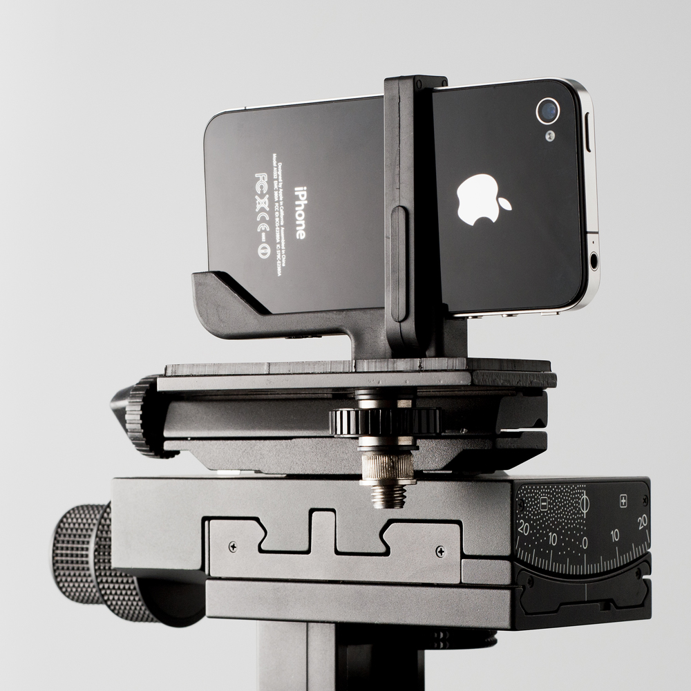 La empresa Studio Neat comercializa un soporte sencillo e ingenioso para fijar un iPhone en un trípode con rosca 1/4″, la más usual en la mayoría de trípodes de gama tanto amateur como profesional así como todo tipo de soportes de cámara para rodaje de video. Su nombre es Glif y en su versión más completa se compone de tres piezas que permiten: