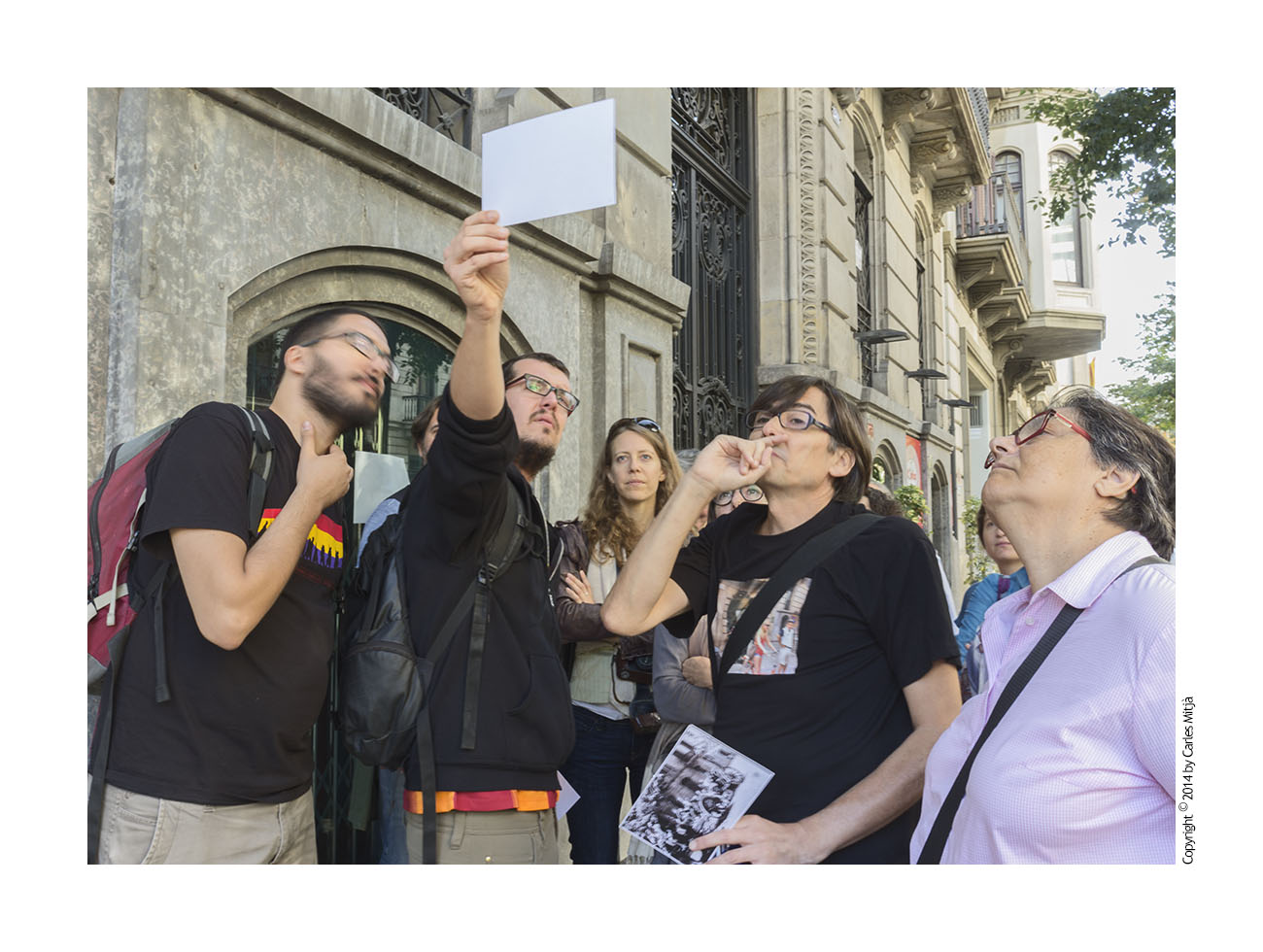 El recorregut continua per el carrer de Pau Claris fins a la Jefatura de Policía de la Via Laietana i acaba a la Plaça de Catalunya passant pel Portal de l’Àngel. Potser l’aspecte que més ressaltaria de l’experiència, és la constatació de l’enorme poder informatiu que poden tenir les imatges a partir del treball rigorós i les hores d’estudi que a ben segur en Ricard hi ha dedicat. Si hi esteu interessats, no deixeu de visitar l’adreça de Ricard Martínez al Facebook i el blog Arqueologia del Punt de Vista. Allà hi trobareu informació de properes Experiències Centelles que a ben segur un donaran una nova manera de mirar a les imatges. Tindreu també l’oportunitat de passar una matí ben agradable en companyia de gent que comparteix el denominador comú de la passió per la fotografia i la preservació del patrimoni històric. Animeu-vos-hi.
