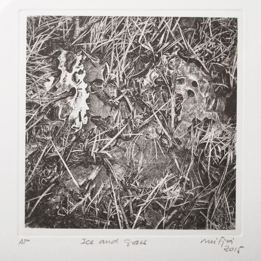 Figura 2. Ice&Grass Plancha de 150x150mm. Imagen de 140x140mm. Tinta Charbonnel Noir 55981 sobre papel Hahnemühle Bamboo de 265g/m2 (hacer click en la imagen para ver una versión ampliada).