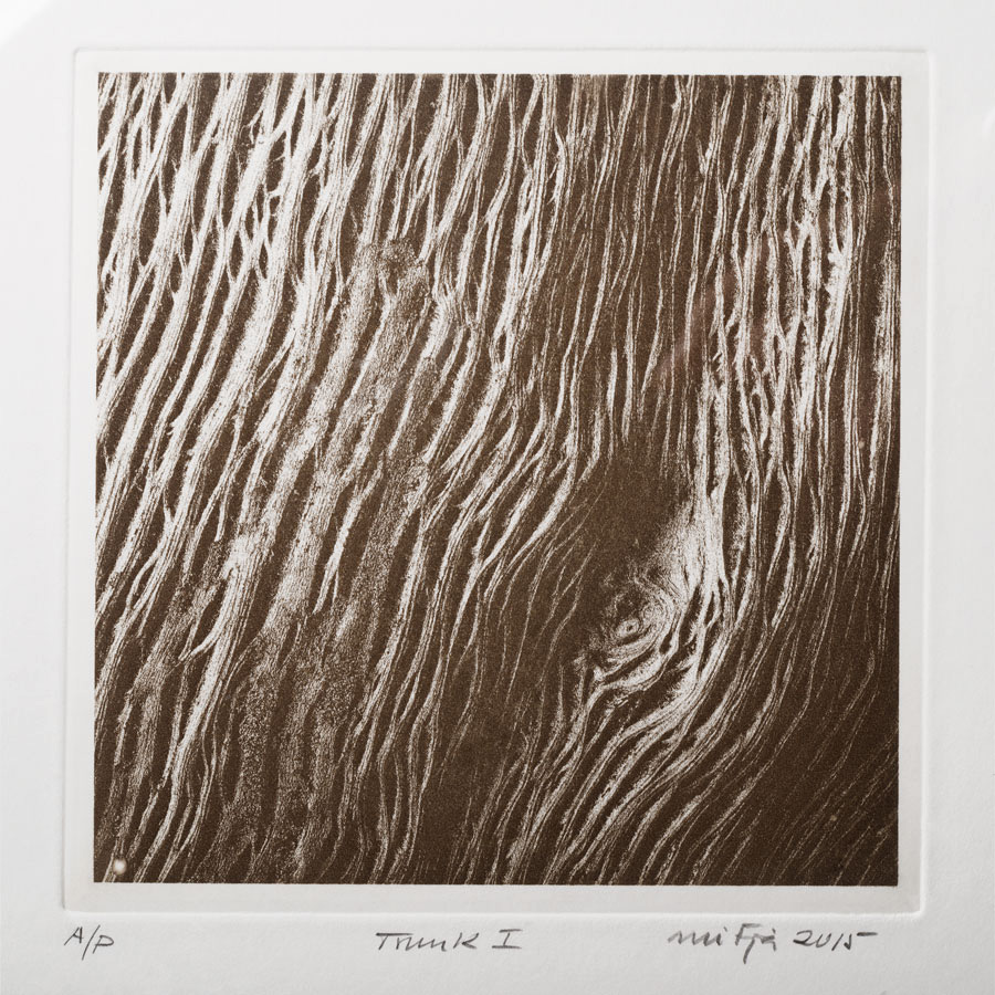 La imagen Trunk – I se tomó en estudio con una cámara Nikon D610 y el objetivo Nikon Micro-Nikkor 55mm f/3.5 (para algunos detalles de la toma, ver el post Profundidad de Campo en Adobe Photoshop). La generación del fotolito positivo y la estampación se realizaron del mismo modo descrito para la imagen Ice&Grass.