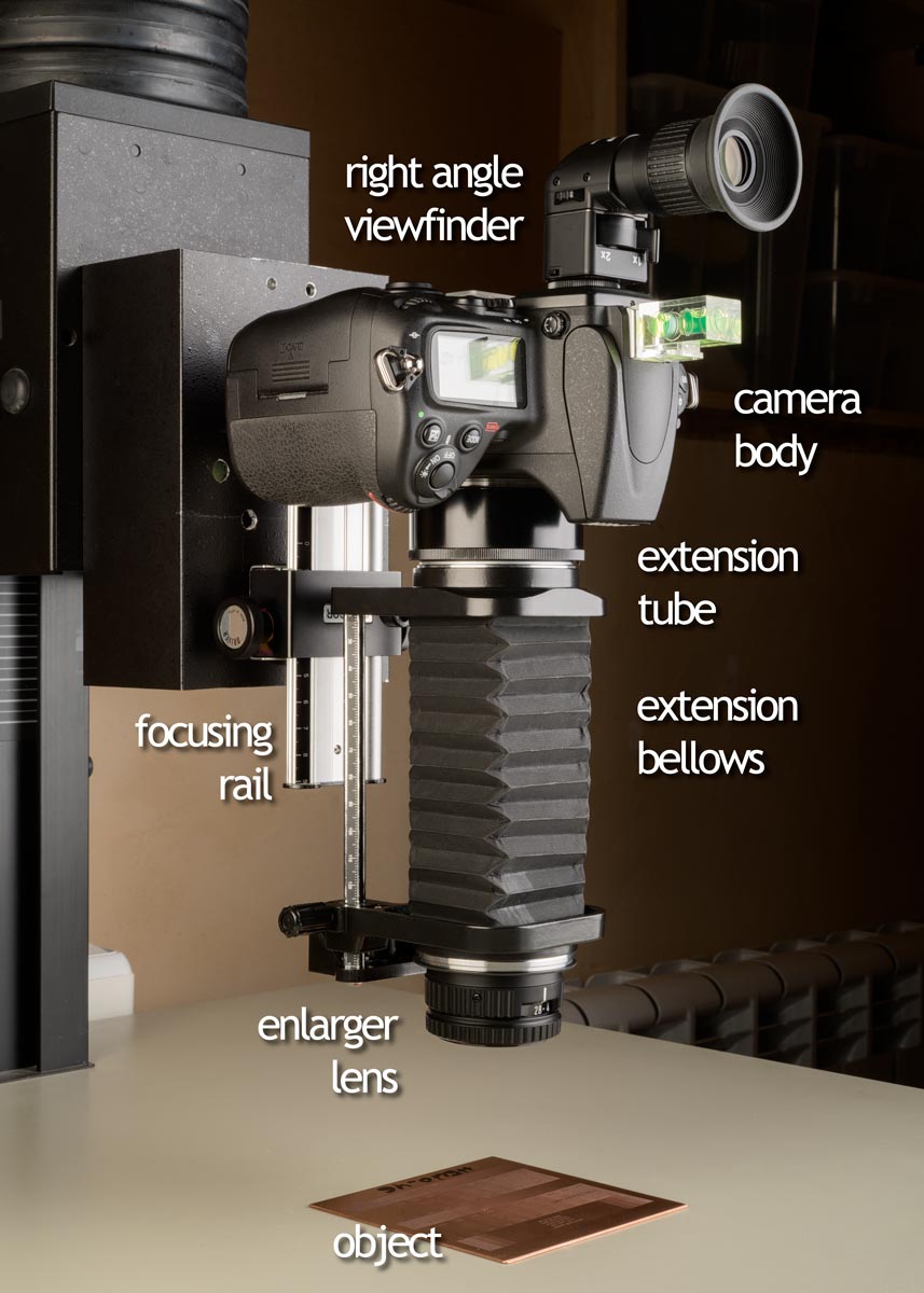 In order to clarify a bit more all these questions, several trials have been performed. In first place, a step wedge file (Fig., 2) has been printed with the usual method as a positive for heliogravure in an Epson Stylus Photo R3000 inkjet printer. A piece of Dragon Gravure carbon tissue from Cape Fear Press has been initially exposed to a digitally prepared screen of 900ppi with a black coverage of 45%. The carbon tissue has been then exposed to the step wedge. After adhesion to a copperplate and development, the plate has been etched in the normal manner, inked, wiped and pulled on paper in an etching press. The results on the plate and the paper have been reproduced with a photomacrography set up (Fig., 3), in order to better look at the presence of the screen in the different steps. As a first approximation, the resulting images (Fig., 4) have been visually examined. In order to confirm the visual perception, the same images have been digitally measured and analyzed in the frequency domain.