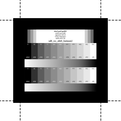 - A suitable test target with eleven steps from pure black to pure white (Fig., 1) is printed with the same printer and settings employed to print the positive transparencies on Pictorico OHP film. The necessary time is allowed to completely dry the printed ink. In my case, a minimum of 12h at ambient temperature. This is an important step in order to ensure a consistent density range.