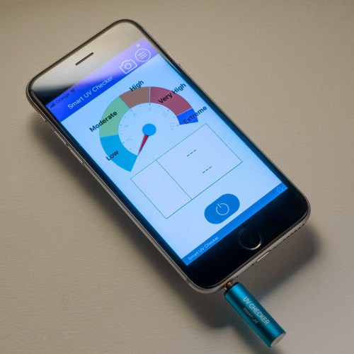 Searching for cheaper options, I decided to try with a sort of UV meter intended to control the risk of hazard by the Sun UV radiation. and bought in eBay the Smart UV Meter . It is a little cylinder that must be simply plugged into the headphone jack of the smartphone. We need in addition the corresponding smartphone app Smart UV Checker. Total cost is US$29.99 + shipping. The Fig., 1 shows the meter plugged on an iPhone6S.