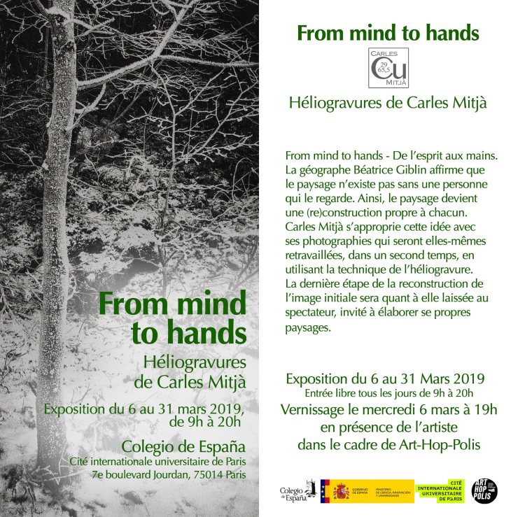 The heliogravures of the “From mind to hands” project will be exhibited at the Colegio de España in the Cité Universitaire from Paris, France.