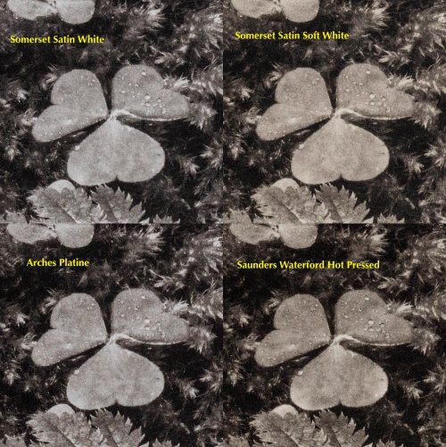 - The same effect is perceived comparing the couple of warmer paper prints. The printed on Somerset Satin Soft White looks as slightly more contrasty.