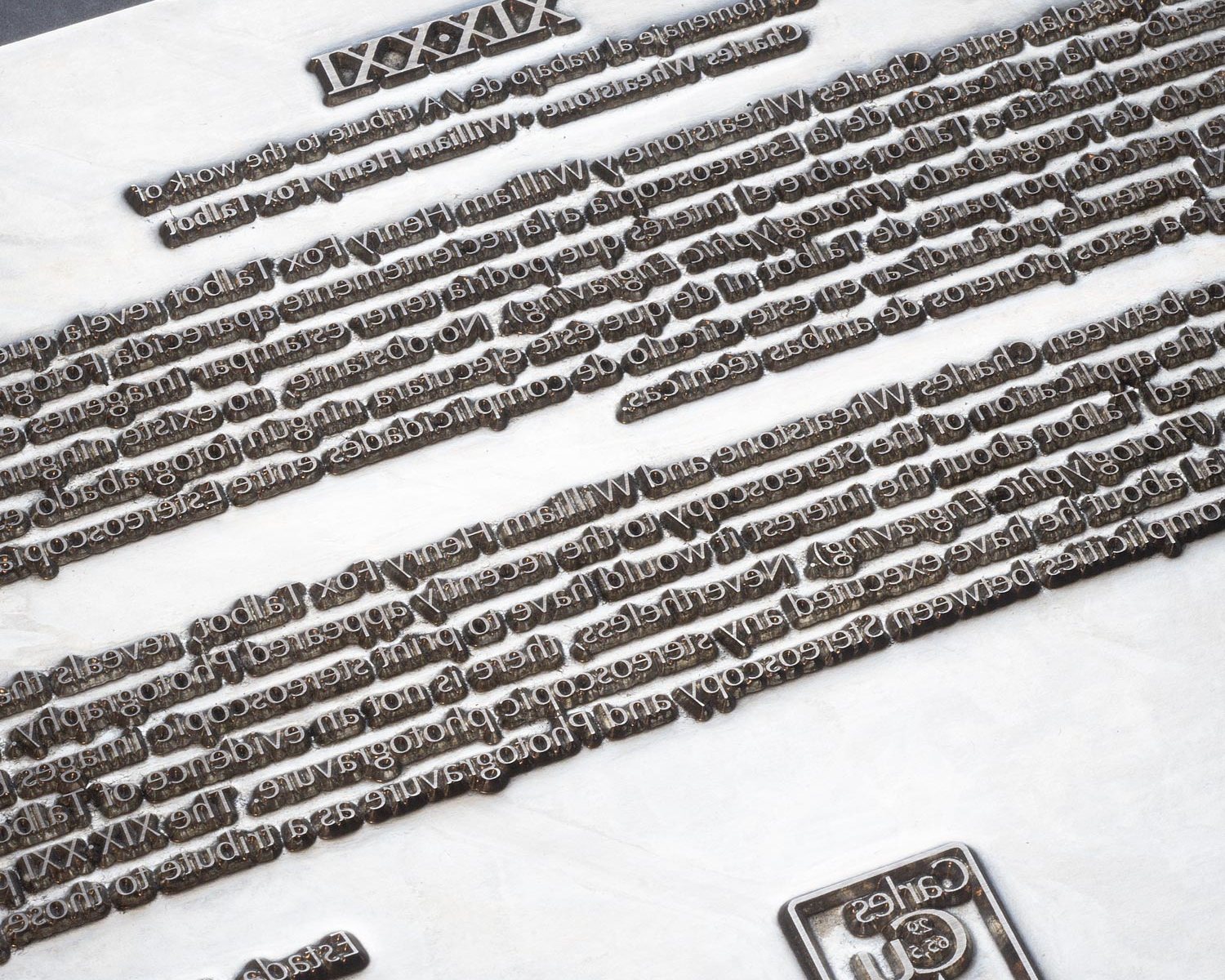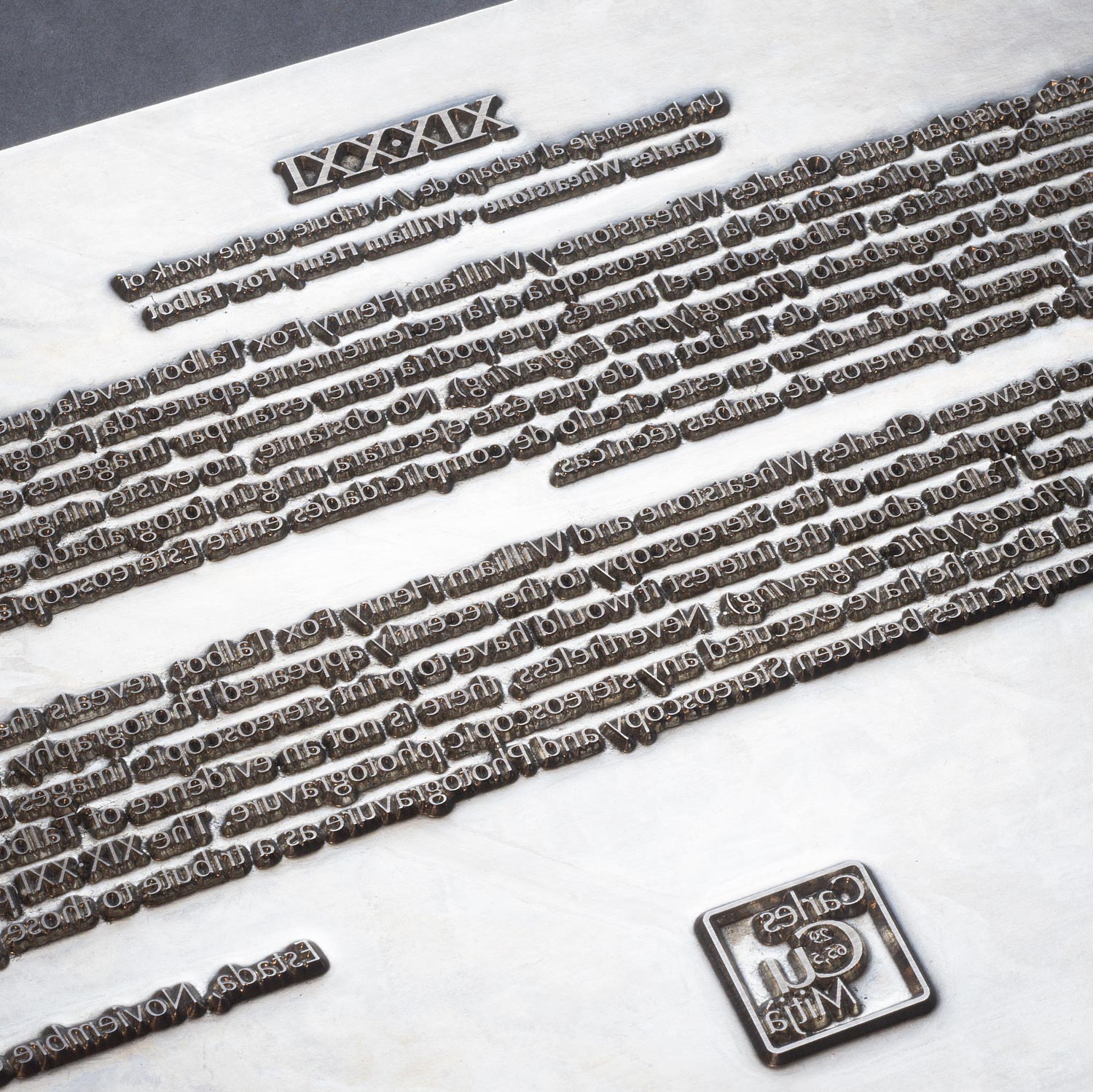 The heliogravure work XIX·XXI, about the relationship between Heliogravure and Stereoscopy, includes a text explaining the motivation and the historical facts in which is based. After the acquisition of an old Galley Proof Press, this is the first undertaken work of hand pulled letterpress. Although this proof press was conceived to work with the cast types, it is not so easy today to have available a number enough of it to have freedom of choice. Another drawback with cast types is the need for wide storage room, not always available. Then, the approach was relayed on a text composed in the computer and a magnesium letterpress plate provided by a pre-press service bureau. As a consequence, the press needs some modification to receive the magnesium plate. Classic vintage cast types have around 23mm in height depending on countries, while the magnesium plate has a thickness of 3mm from the base to the surface receiving the ink. In order to compensate this difference and although the press has height regulation bolts, it was added a safety glass base with 20mm in thickness, which in turn receives the letterpress magnesium plate (Fig., 1).