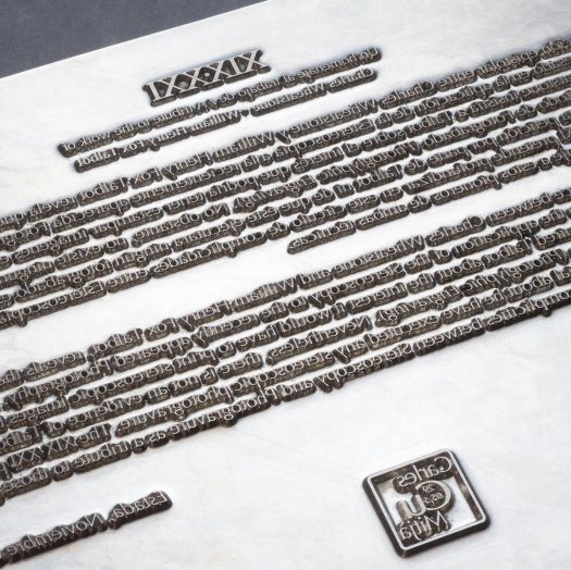Once the magnesium plate is on place, it must be inked with a brayer as evenness as possible and being careful to avoid ink in any area surrounding the types. The press cylinder is covered with a latex sheet that provides a certain elasticity at the moment to press the printing paper. This sheet, or tympan, allows also to intersperse paper sheets of diverse thickness as an adjustment of the final pressure. As a function of the printing paper weight and thickness, the ink and the bas-relief desired, those spacers can be calibrated as needed beyond the height regulation provided by the press lateral bolts. Those parameters and many others belong to an apprenticeship demanding time and numerous trials. Apprenticeship that in old times drove to achieve a mastering and that today is one of the interests to practice those techniques. Some of those aspects will be commented in future posts. In the meanwhile, at the Fig., 3 are shown the result in this case.