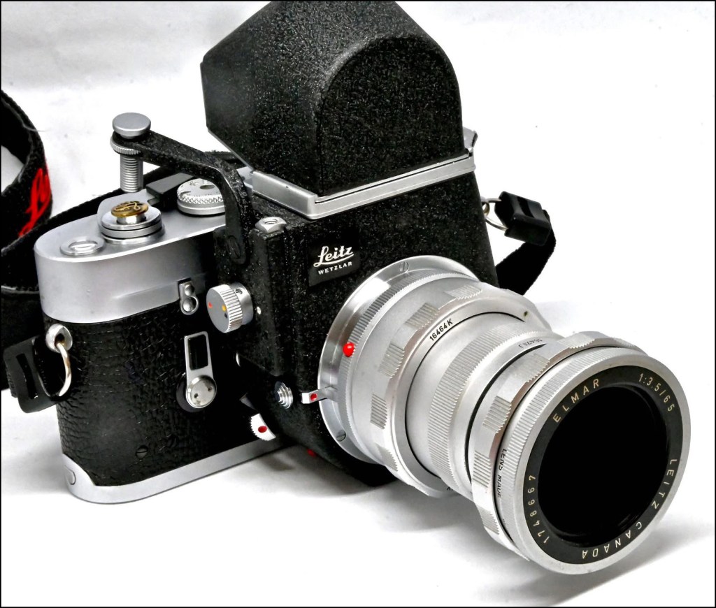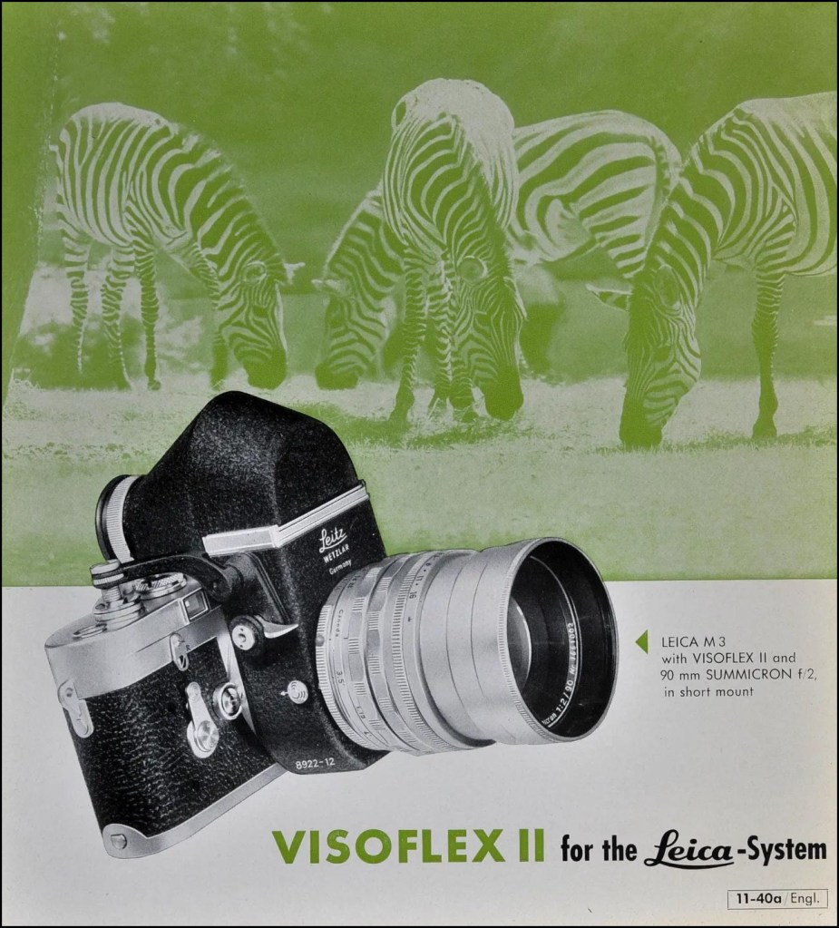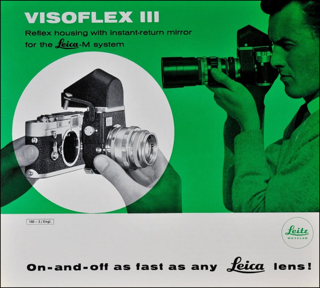 Supongo que por decisión del algoritmo, Facebook me mostró hace unos días unas imágenes subidas por el usuario Otohiko al grupo Leica III User Group. En ellas aparecea un cuerpo de Leica M3 con el accesorio Visoflex. Este accesorio consistía en una caja de espejo retráctil y un pentaprisma similar al de las cámaras SLR, que permitía “convertir” en reflex los cuerpos rangefinder de la serie M de Leica. En la Fig., 1 se muestran, de izquierda a derecha, la citada imagen de Facebook y dos portadas de catálogos del visor Visoflex II y III respectivamente.